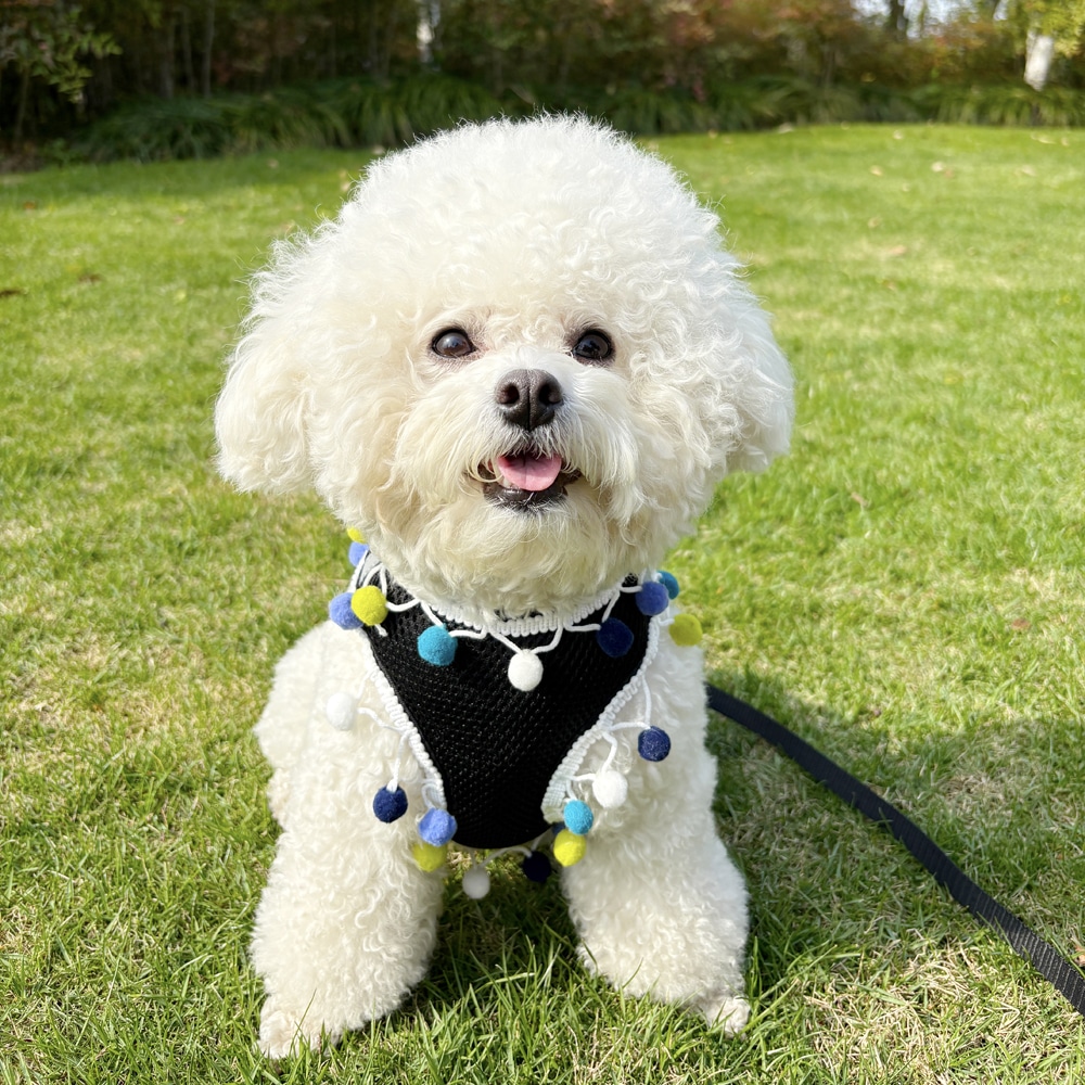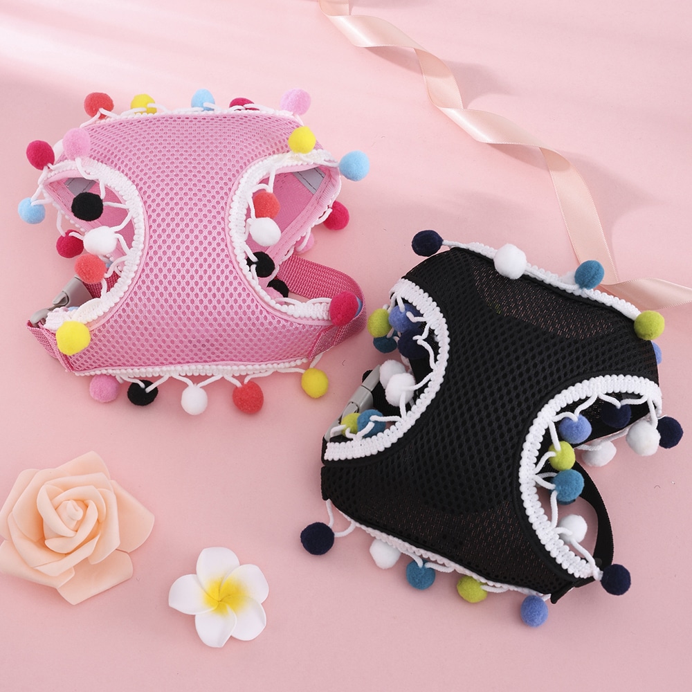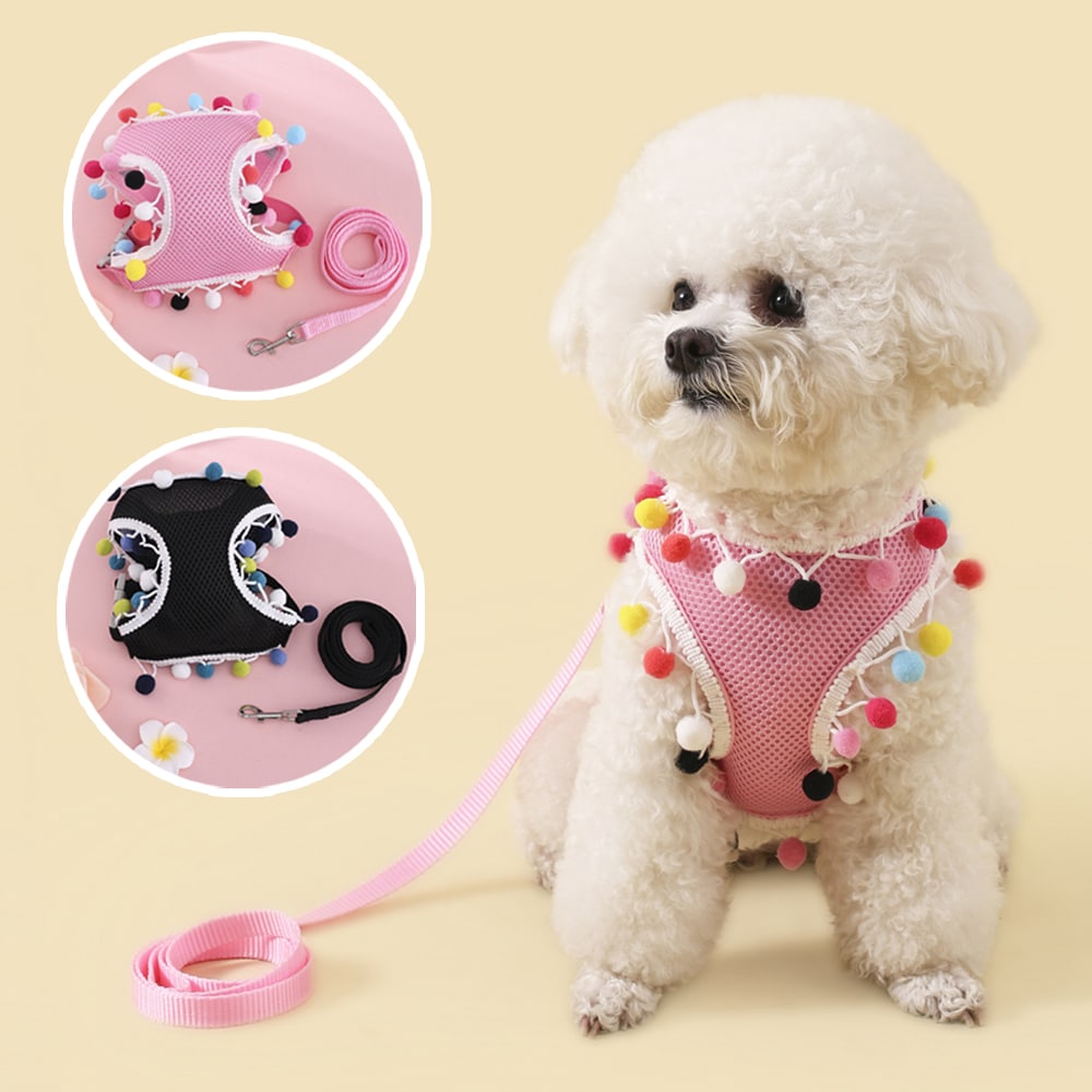Keep your furry friend safe and stylish this summer with our Adjustable Breathable Mesh Small Dog and Cat Harness Set. Designed especially for puppies and small pets, this harness features a soft, lightweight mesh fabric that allows air to flow freely, keeping your pet cool and comfortable even on the hottest days. The adorable colorful ball lace adds a playful touch, making every walk a little more fun for both you and your pet.