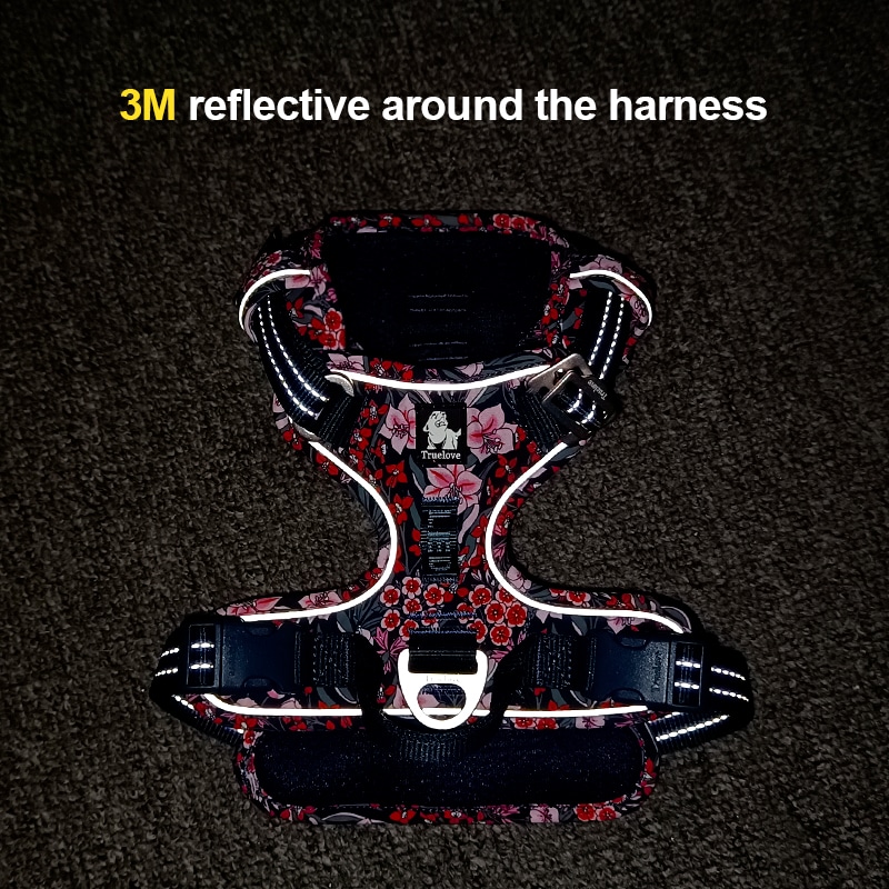 Durable Nylon & Aluminum Dog Harness with Floral Design – Adjustable Comfort Fit