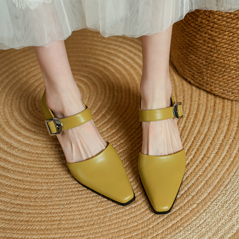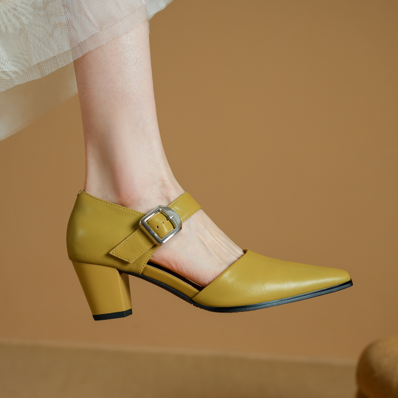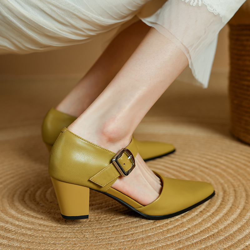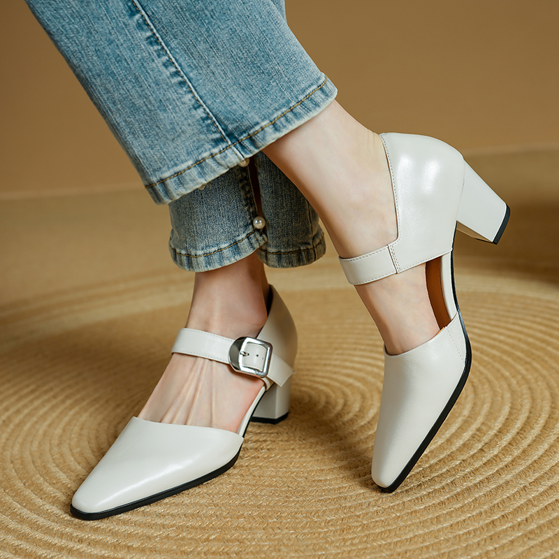 Crafted from genuine cow leather, these pumps offer a luxurious feel and durability that lasts. The soft sheepskin insole gently cushions your feet, making every step comfortable from morning to night. The rubber outsole ensures reliable grip and stability, while the square heel measures a comfortable 2.2 inches, giving you height without sacrificing balance. The buckle strap closure adds a timeless touch and a secure fit.